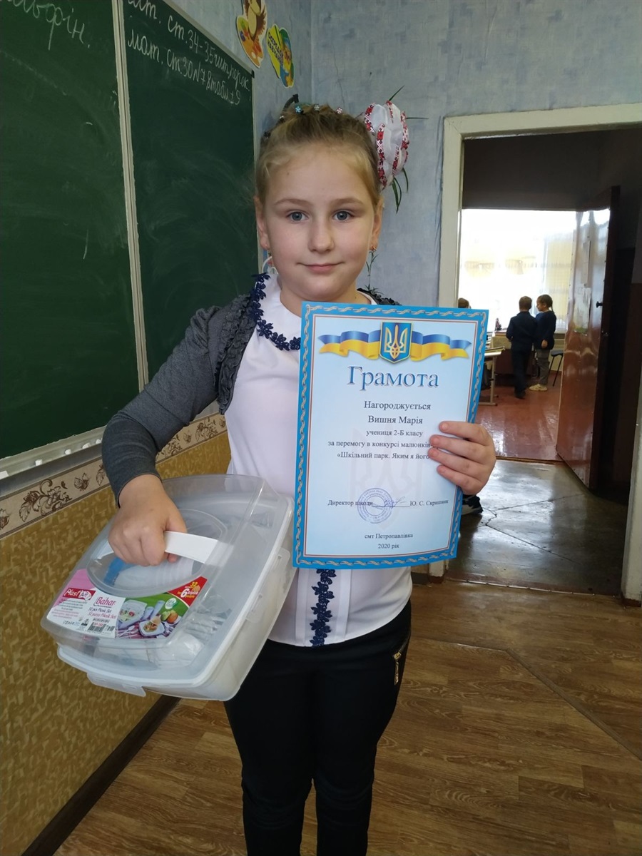 - Я люблю малювати і ходжу на гурток малювання. Тому я вирішила взяти участь у конкурсі «Шкільний парк. Яким я його бачу» і перемогла. Я дякую моїй школі за такі конкурси, і надалі братиму в них участь, – із захватом розповідає переможниця конкурсу Марія.
