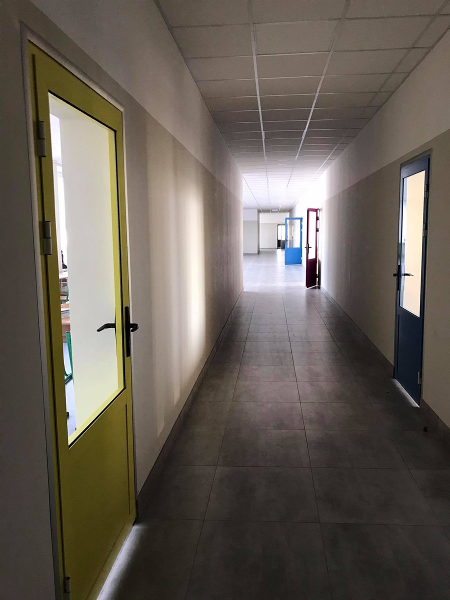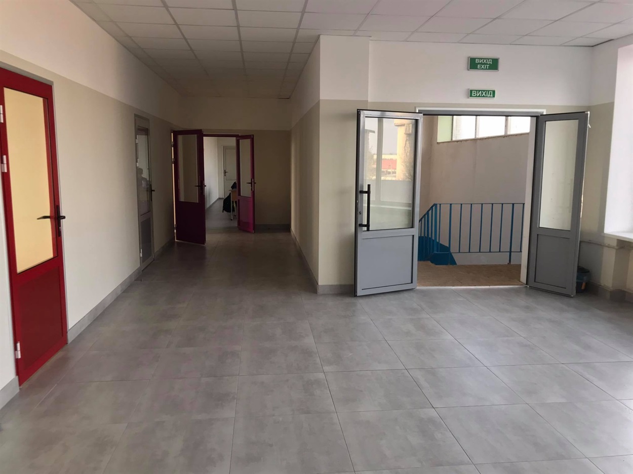 На третьому поверсі в оновлених класах вже йде навчання. Через прозорі двері можна споглядати за уроком.