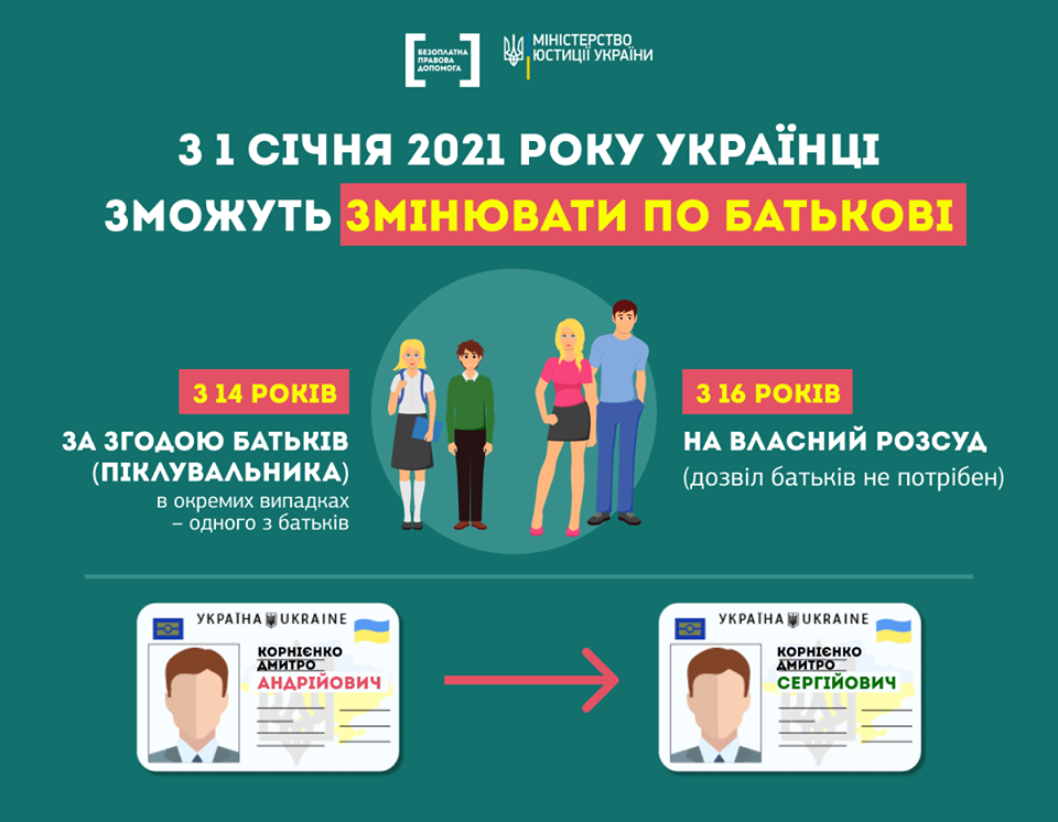 - Крім того, змінити по батькові можна буде і з 14 років, але лише за згодою батьків чи піклувальників.