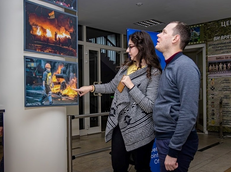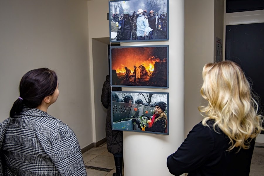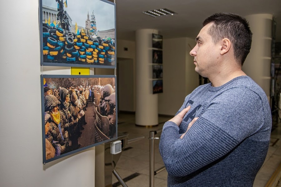 Події холодного лютого 2014-го – у світлинах. Фотовиставка до Дня Героїв Небесної Сотні запрацювала у холі Дніпропетровської ОДА. Вона триватиме тиждень.