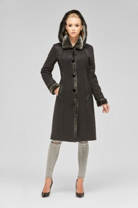 Характерными чертами модели является одновременное присутствие воротника и капюшона. Также изделие отличается приталенным силуэтом и длиной до колен. Роль застежки играют четыре крупные пуговицы. Широкий размерный ряд позволяет купить дубленку представительнице слабого пола любой комплекции.