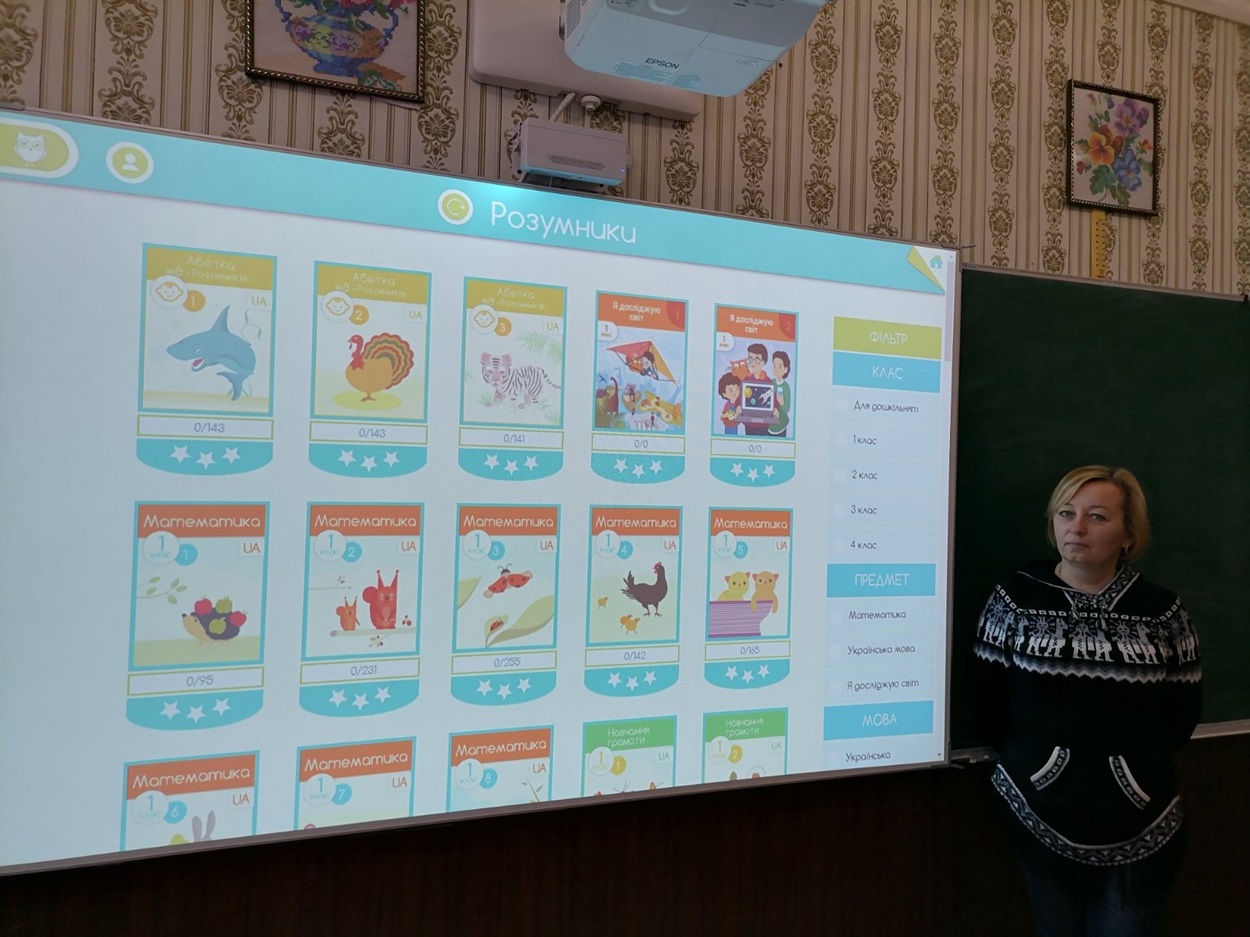 Електронний освітній ресурс із предметів українська мова та математика, наявність бібліотеки з 200 тем уроків та демонстрацій, проінстальованих на комп’ютер. Кожна тема містить різноманітні мультимедійні засоби для її пояснення. Для перевірки знань передбачені контрольні запитання, завдання та тести, при цьому перевірка правильності виконання завдань та демонстрація результату – моментальна. Учні та вчитель мають швидкий доступ до завдань поточного, попереднього та наступних класів, індивідуальна траєкторія навчальних досягнень зберігається як локально, так і на сервері для синхронізації та відновлення в разі потреби. Загальна сума зазначеного проєкту склала 972,3 тис. грн.