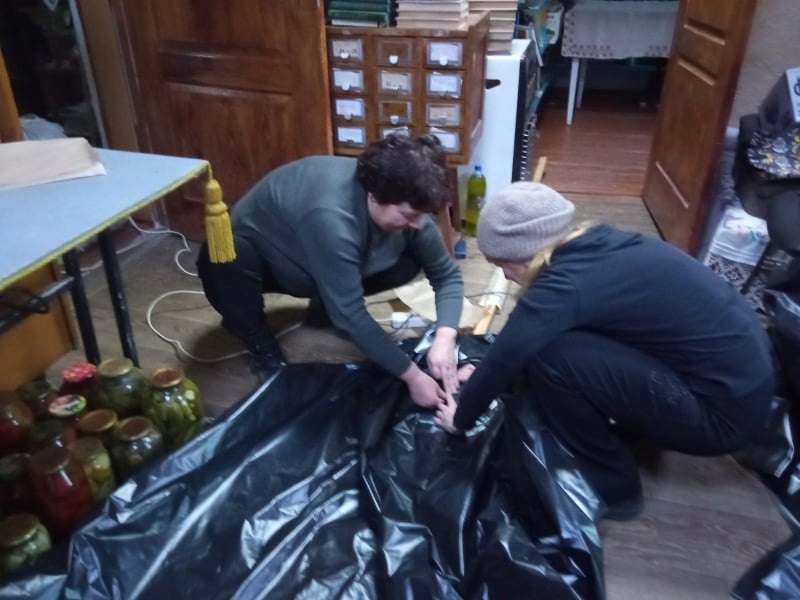 Музей та бібліотека тепер виконують іншу місію. На книжкових полицях знайшлося місце для зберігання круп, а в дитячій бібліотеці символічно збирають дитячі речі. У великій залі не лише збирають одяг, а моделюють.