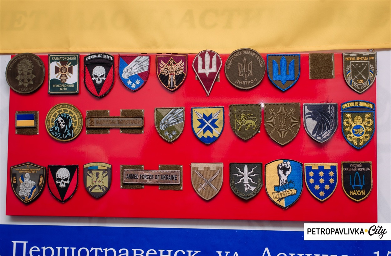 - Маємо шеврони від багатьох бригад, у нашій колекції є від краматорського прикордонного загону, це хлопці, яких перекинули з Білоруського кордону до Великої Новосілки. 46 ДШБ з Херсонщини - хлопці передали для нас шеврон. 25 бригада, 56-та Маріупольська – цей шеврон від бригади, що виходила з позицій, тому він у крові. 105 ТРО, яка відходила від Волновахи. Президентський полк. Холодний Яр. 72-га бригада, - розповідає Сергій Куклін.