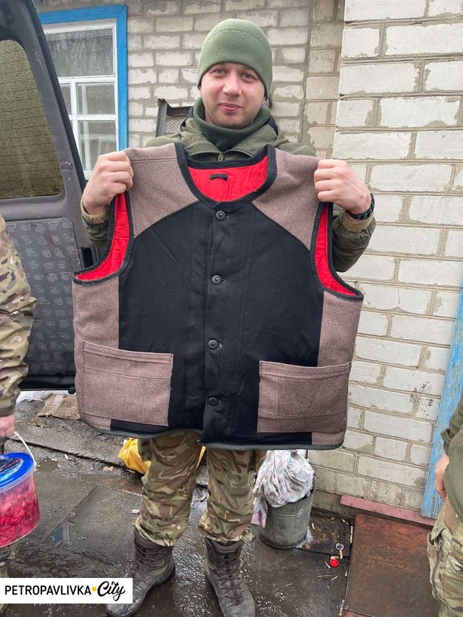 - А ще передавали теплу жилетку. У Першотравенську місцевий житель, шахтар, з початку війни сам шиє речі, а ми передаємо їх на передову. Шив і рукавиці, а зараз жилетки та кладе в них обов’язково для хлопців в шоколад та цигарки, - розповідає пані Тамара.