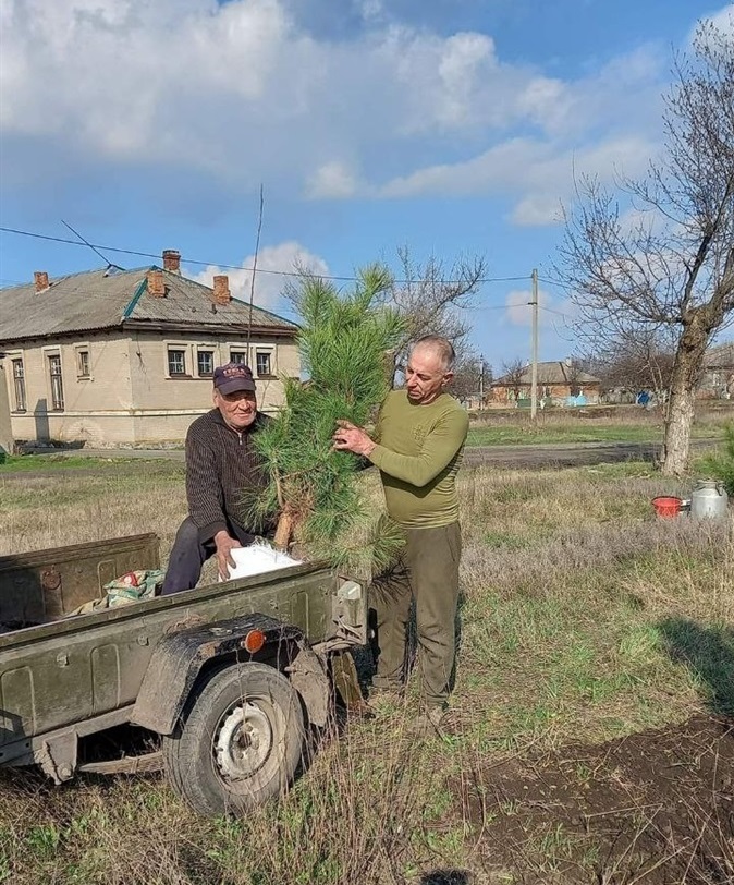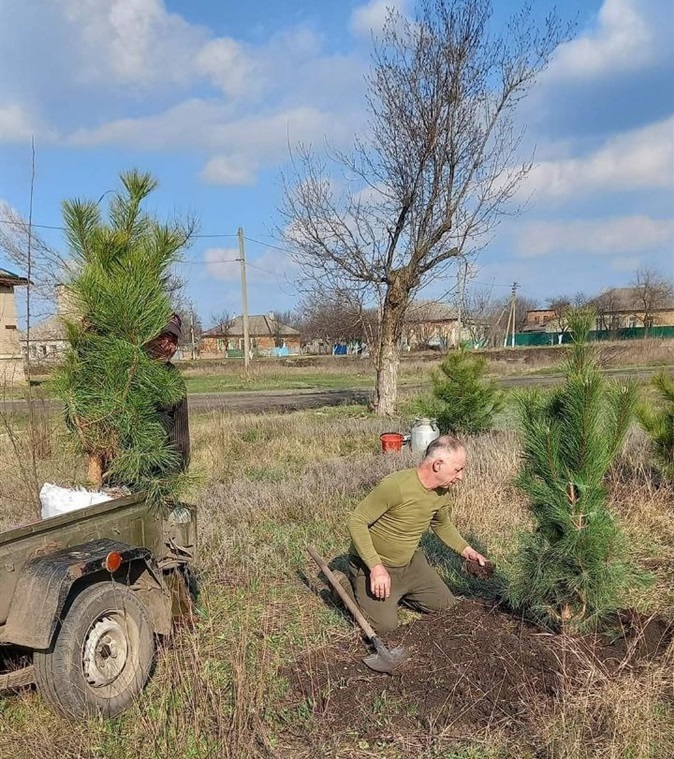 «У кожної людини є свої мрії, свої плани. У Вадима Ручого є давня мрія створити зону відпочинку, посадити сосни, берези, побудувати дитячий майданчик. Сьогодні висаджені перші сосни». Повідомляє місцева жителька Катерина Британ.
