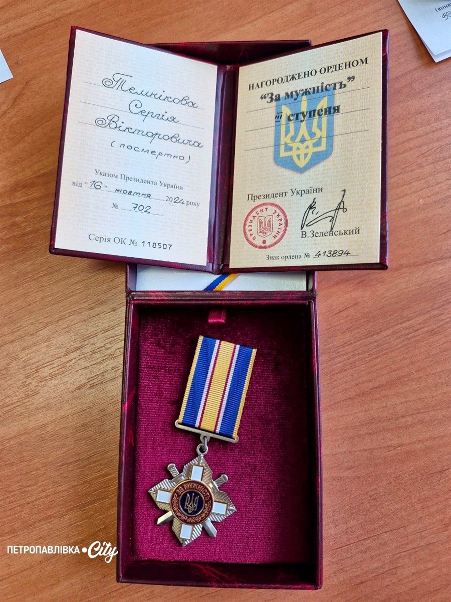 Сьогодні, 4 березня 2025 року, рідні захисника України Сергія Тємнікова отримали нагороду – орден «За мужність» ІІІ ступеня. Посмертна нагорода воїна, найкращого чоловіка, батька та дідуся. Орден полеглого воїна вручили онуку Максиму.