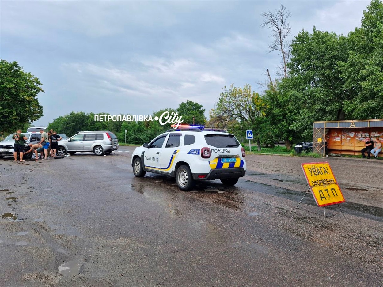 Дорожньо-транспортна пригода кваліфікується, як «ДПТ без травмованих», а, попередньо «з потерпілими». Як повідомляють правоохоронці Петропавлівського відділку поліції: на двох учасників пригоди складено адміністративні протоколи.