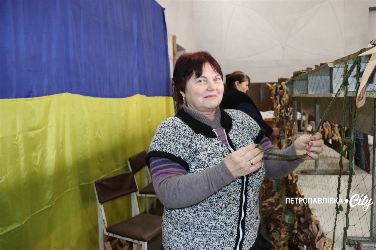 - Лежала вдома на дивані й думала: ну як так? Треба щось робити! Почала плести маскувальні сітки — спочатку в Шахтарському, а потім переїхала до Петропавлівки, ось тепер плету тут сітки, постійно. Погано тільки, що мало людей долучається. А хлопці просять сітки і влітку, і взимку, треба працювати. Нехай приходять усі охочі плести сітки. Навчимо всіх! Треба — аби швидше закінчилася війна. Нам потрібна Перемога.