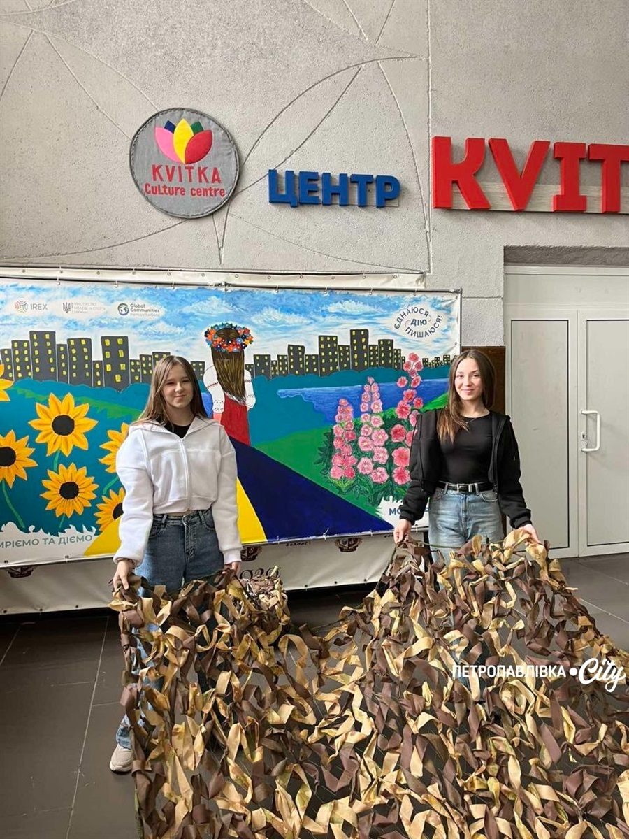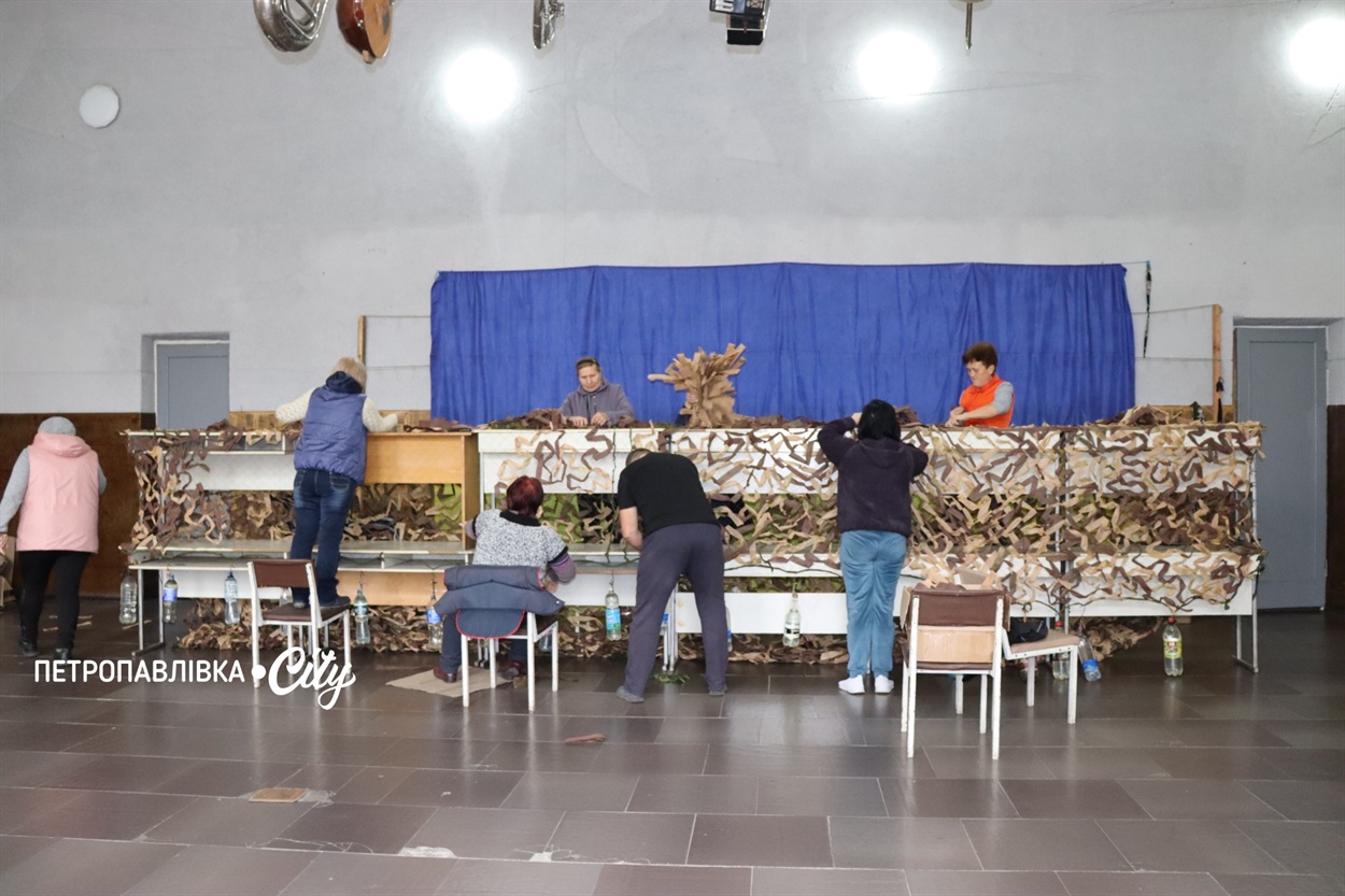 Коли у лютому 2022 року росія розпочала повномасштабне вторгнення, у Петропавлівці, що на Дніпропетровщині життя зупинилося лише на мить — аби потім початися заново, уже в новому форматі. У будинку культури одразу організували пункт збору гуманітарної допомоги для вимушено переміщених осіб: збирали одяг, речі першої необхідності, посуд, ковдри. Згодом тут почали виготовляти окопні свічки для фронту, а потім — плести маскувальні сітки.