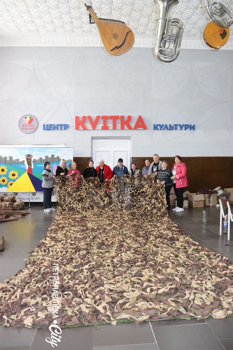 У кожному вузлику — віра, у кожній сітці — захист, у кожній людині, що приходить сюди, — частинка великої любові до України. Поки в Петропавлівці плетуть сітки, можна бути певним: наш тил — надійний. Аби робота волонтерів не зупинялася, допомагайте хто чим може: своїми руками і донатами, бо без вас цієї допомоги не було б.
