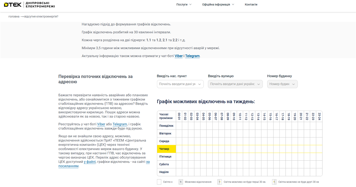 На Дніпропетровщині ввели графіки відключень електроенергії. Розповідаємо покроково, як жителям Петропавлівки дізнатися свою групу та переглянути графік можливих відключень на сайті ДТЕК Дніпровські електромережі.