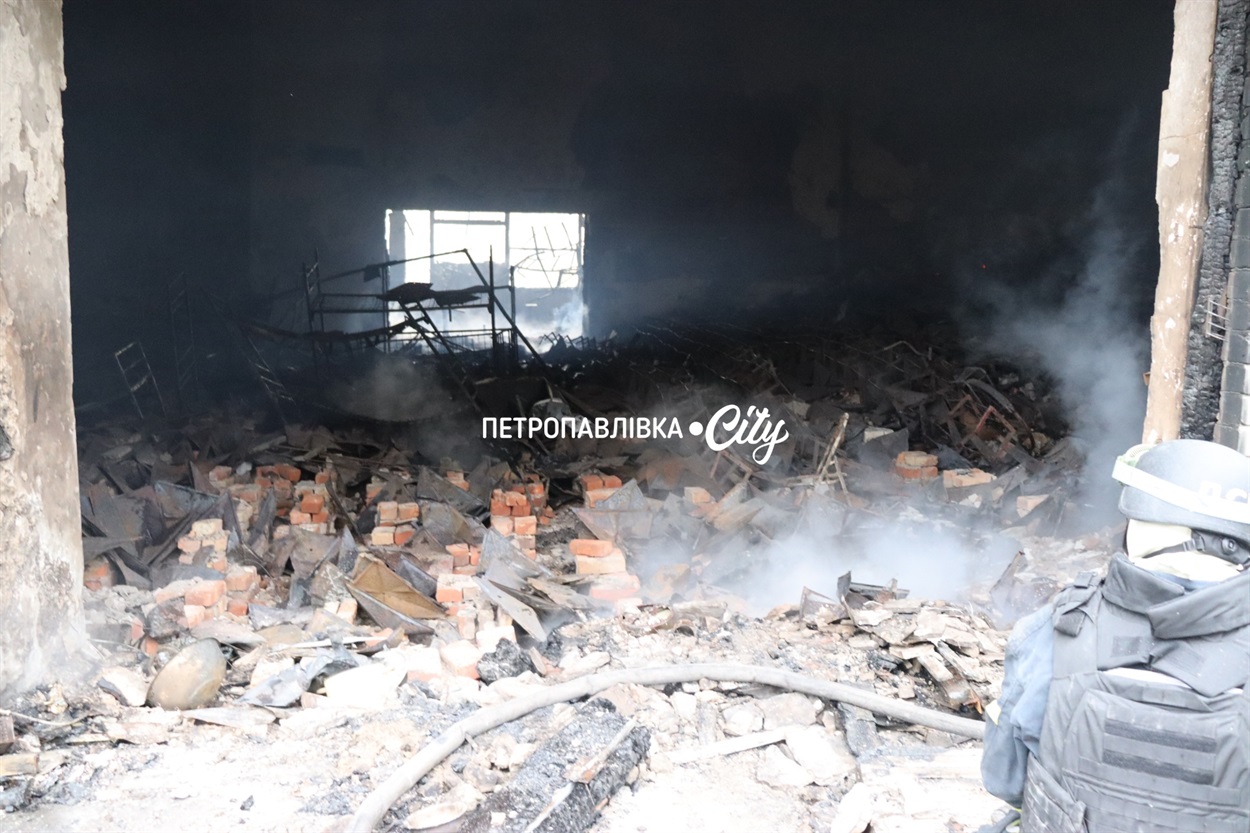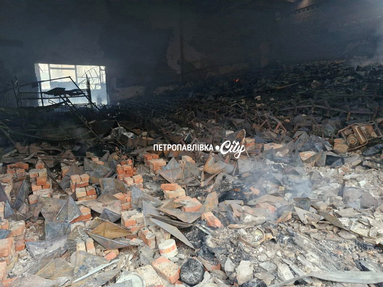 Вогонь гасили вночі, робота лишилася на ранок. Всередині досі димиться попіл. Величезна бетонна зала, яка колись вміщала десятки людей, тепер — чорна від кіптяви й пилу. На підлозі — цегла, перекриття, металеві балки, що впали від температури.
