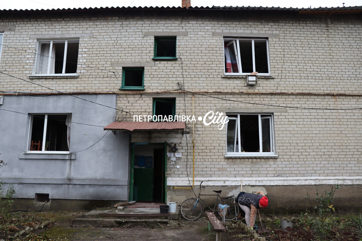 Близької 3-ої ночі у Петропавлівці пролунав сильний вибух. На ранок стало відомо, що ворог атакував житловий сектор. Ворожий шахед вдарив у двір багатоквартирних будинків. Унаслідок атаки пошкоджень зазнали житлові будинки, у всіх вибиті вікна, посічені стіни. Кілька квартир майже зруйновано вщент.