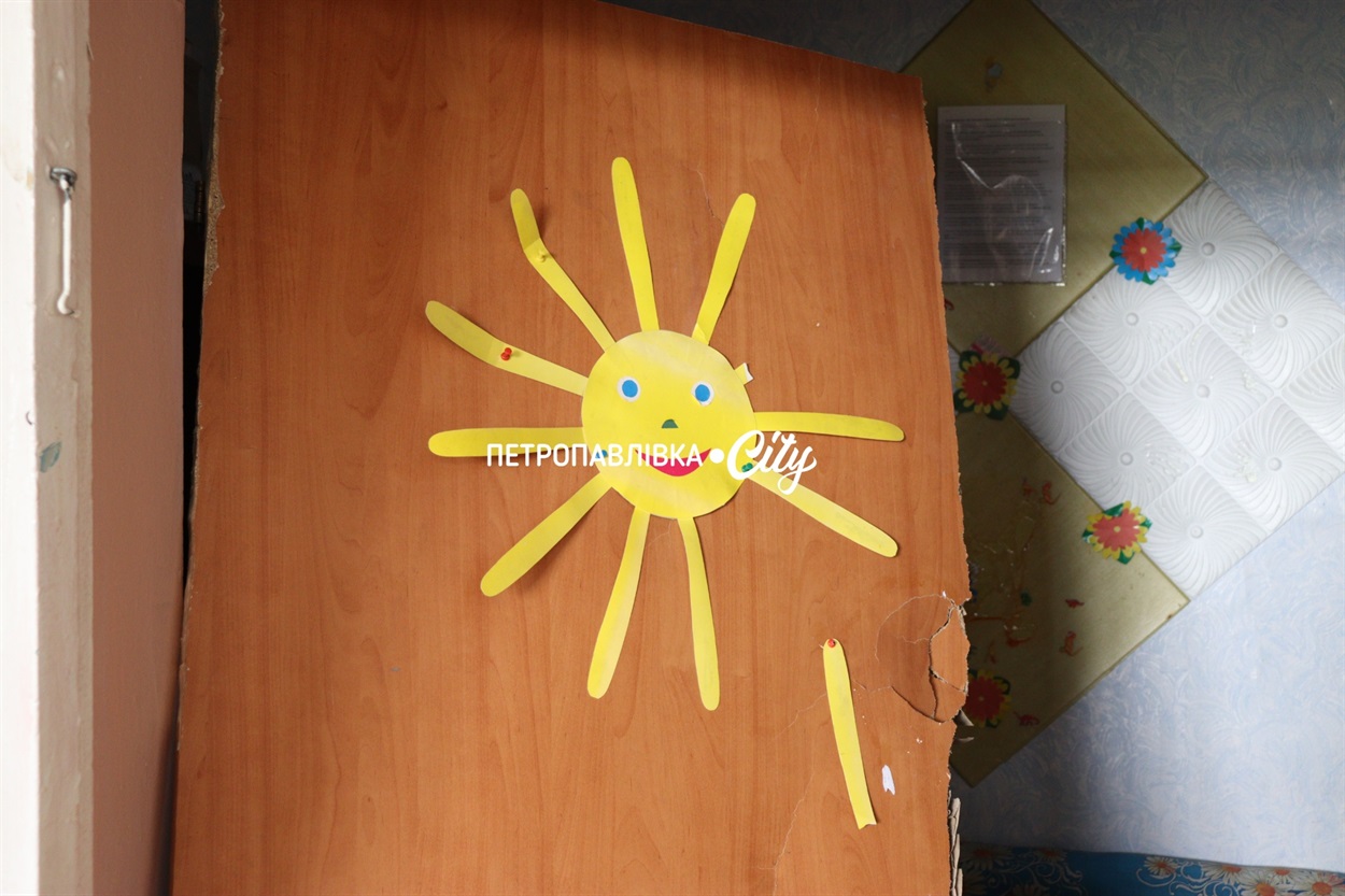 Усередині дитячого садочка бите скло, понівечені дитячі шафи, розбиті меблі, припилені іграшки. Дах завалений: плита повністю перекрила хід на другий поверх, з-під неї видніється блакить неба. На стінах все ще тримаються дитячі малюнки: сонечка на дверях. Яскраві різнокольорові маленькі стільчики та столи вкриті пилом, склом та шматочками цегли… У розбиті вікна та стелю потрапляє дощик, будівля вже не витримає дощу.