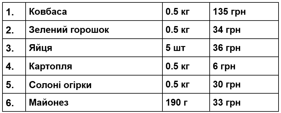 Середня вартість «Олів’є» цього року 274 гривні. Минулого року салат коштував 284 гривень.