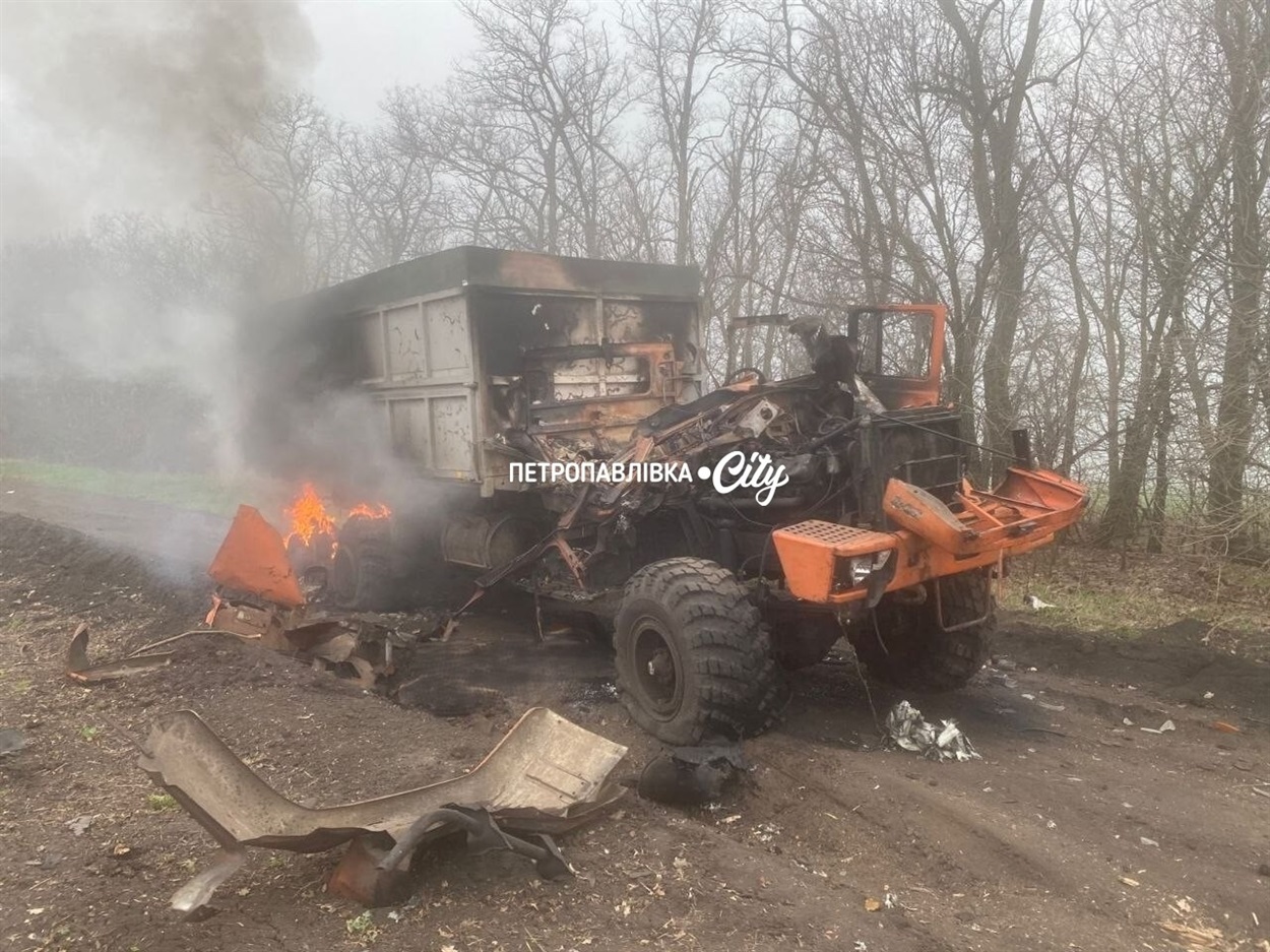 Безпілотник влучив у вантажний автомобіль, КРАЗ. Унаслідок удару транспортний засіб повністю згорів. Водій загинув на місці. Через сильні опіки загиблу людину наразі не опізнано.