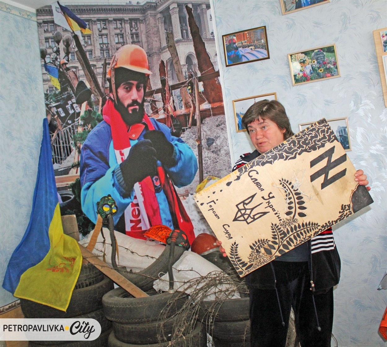 В одному із класів облаштували музей: куточок Майдану з шинами, протигазами. Фанерний щит, яким захищались. Прапор Вірменії. Світлини з сімейного альбому.