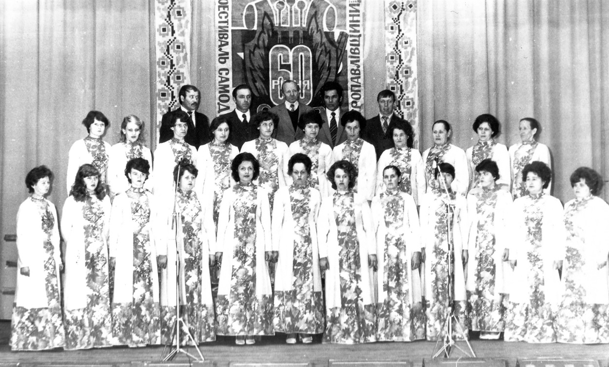 У програмі хору було обов’язково  чотири пісні : про партію, народна пісня, сучасна і без музичного супроводу. Я любила співати в хорі, була солісткою. Зі своєю колегою Ніною Блохою співали дуетом на сцені улюблену пісню "Мамина вишня"