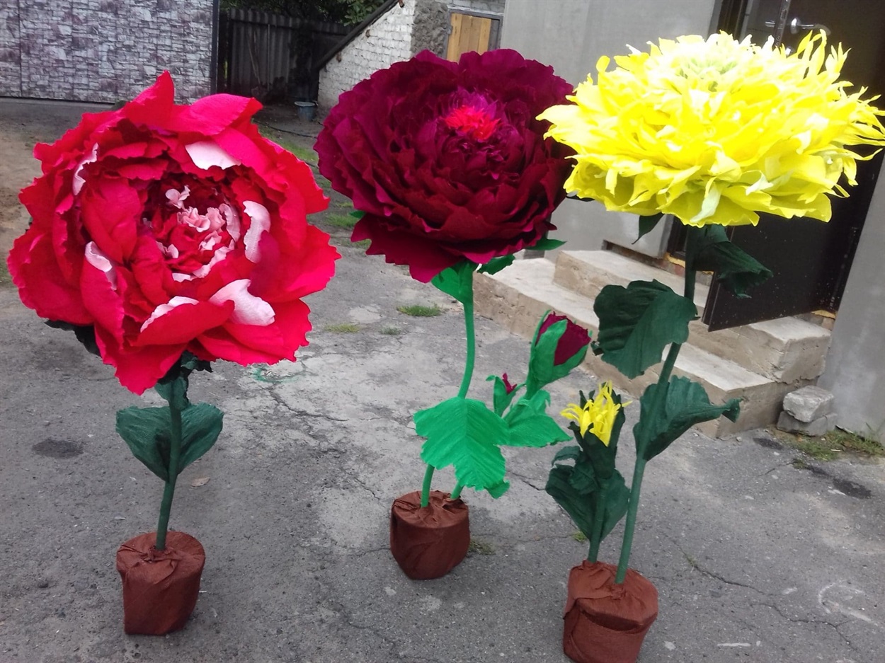 Майя з донькою Євою вирішили подарувати великі квіти для декорування коридорів школи.