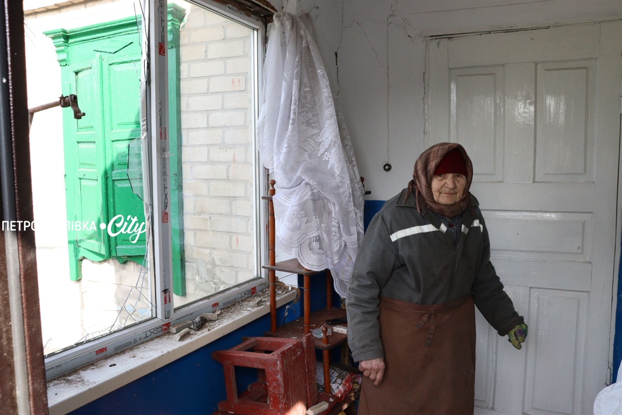 - Шість вікон — і ось сьоме теж… Усі посипались. І в кухні, і в хаті. У хаті ж двойні були — і ті не витримали, — розповідає вона.